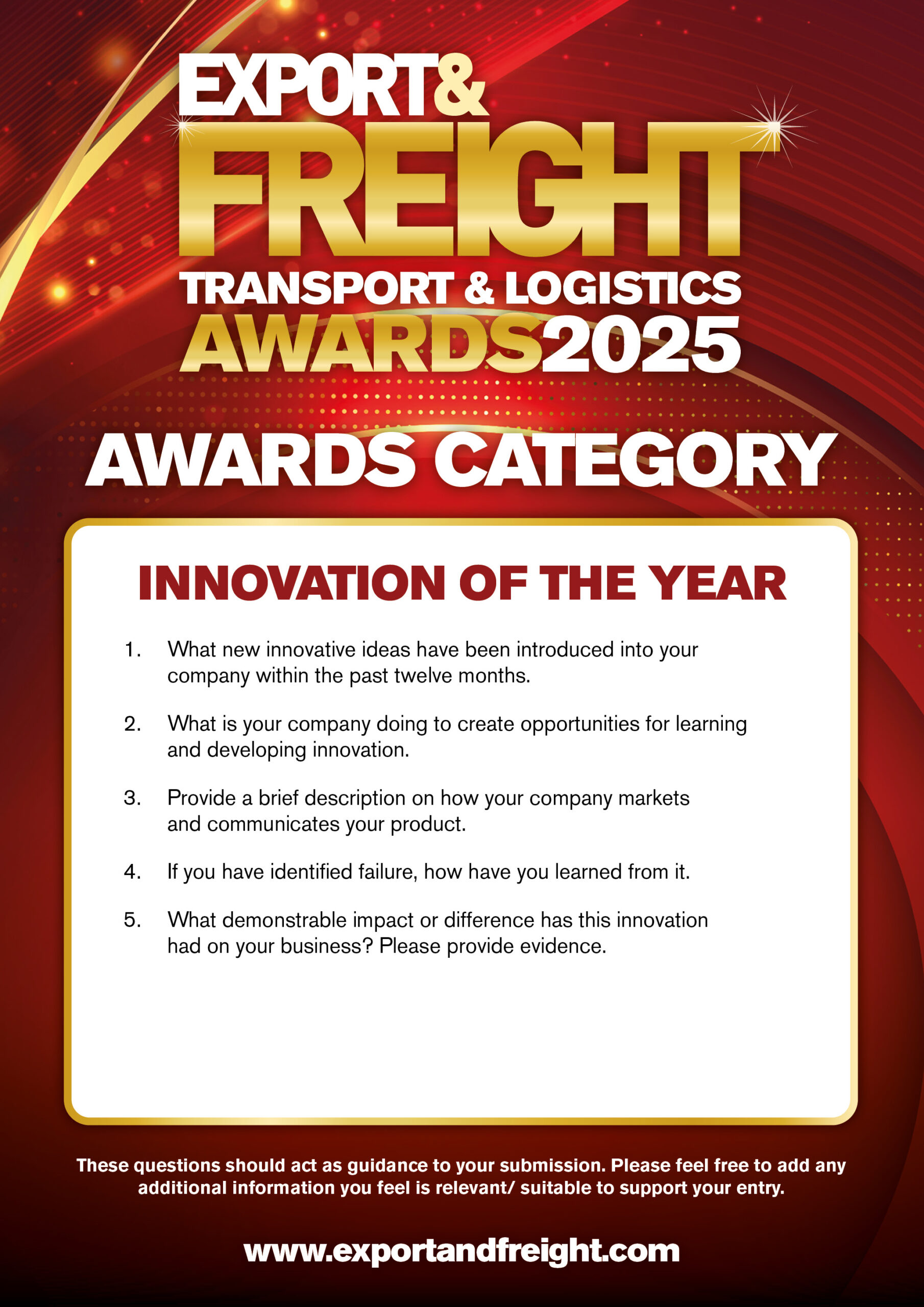 The Innovation Excellence Award is open to all companies operating within the transport and logistics sector who have invested in innovative solutions to make their operations more efficient, profitable and successful. This can be any type of innovation from the latest equipment and facilities to cutting edge technology or environmental solutions.