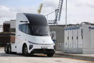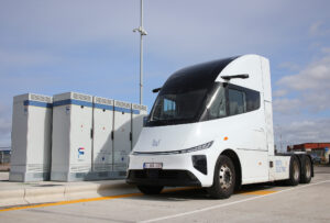 A new electric truck from Belgium-based OEM Windrose, a company with Chinese DNA, has made its UK debut by taking its first charge in the UK at Fleete’s ultra-rapid charging hub at the Port of Tilbury.